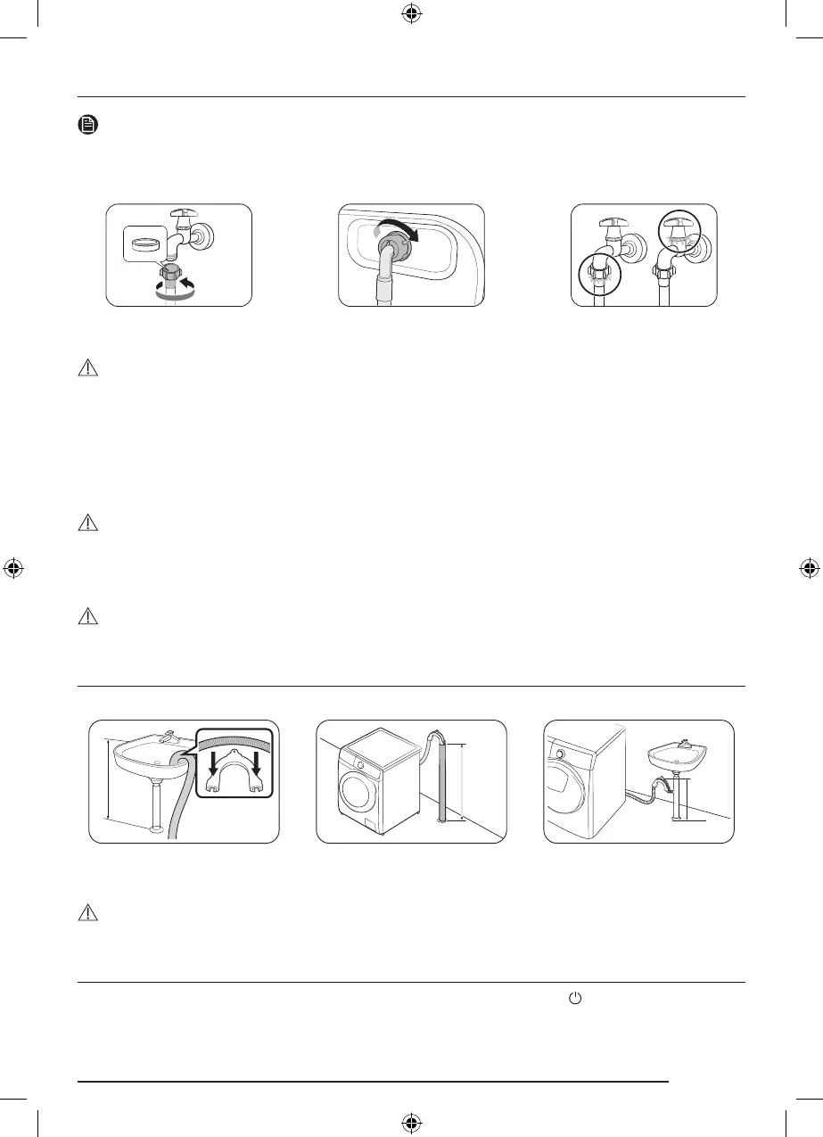 Do not stretch the water hose by force. If the hose is too short, replace the hose with a longer, high-pressure hose.