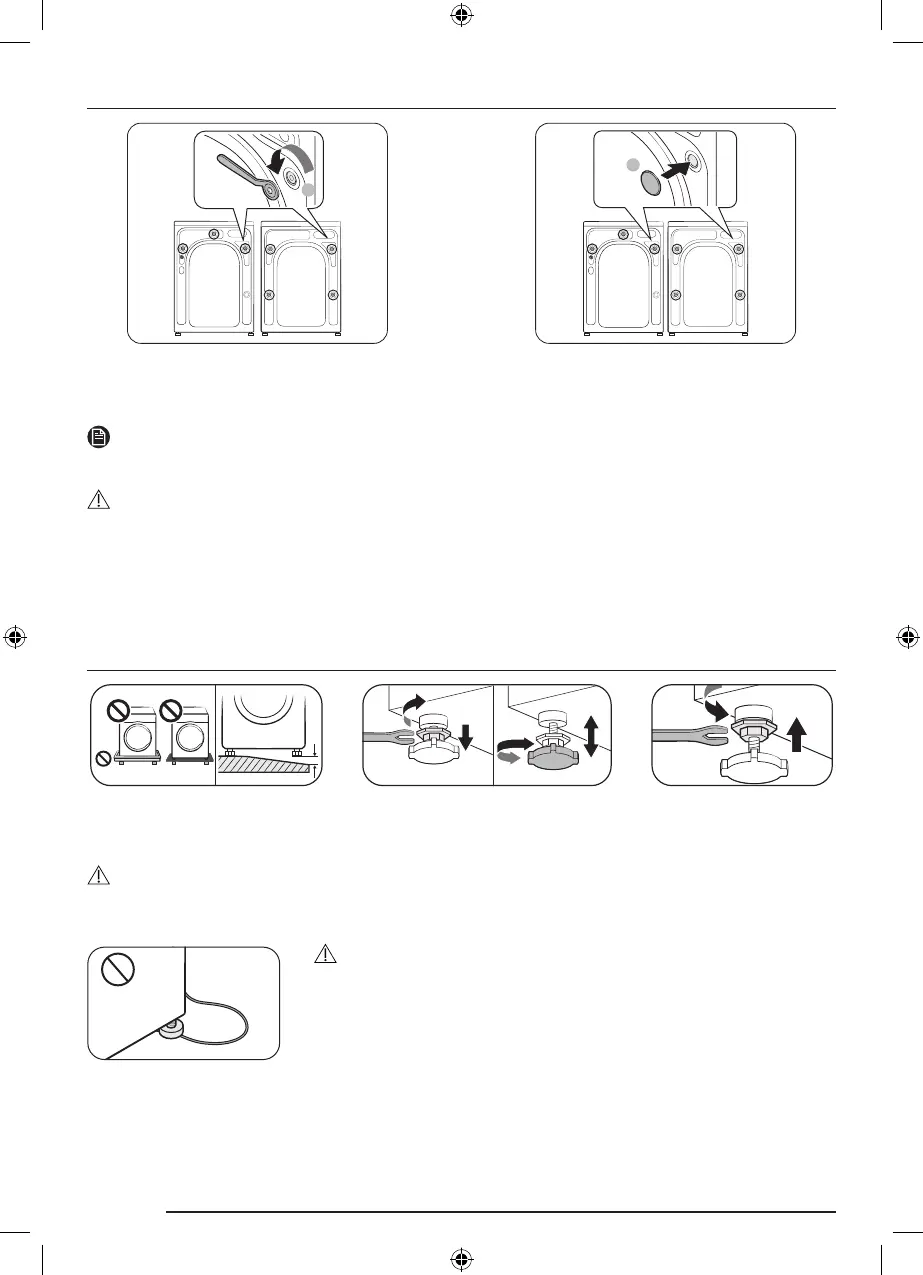 Säädä säätöjalat pesukoneen säätämiseksi vaakatasoon. Kun pesukone on vaakatasossa, kiristä mutterit