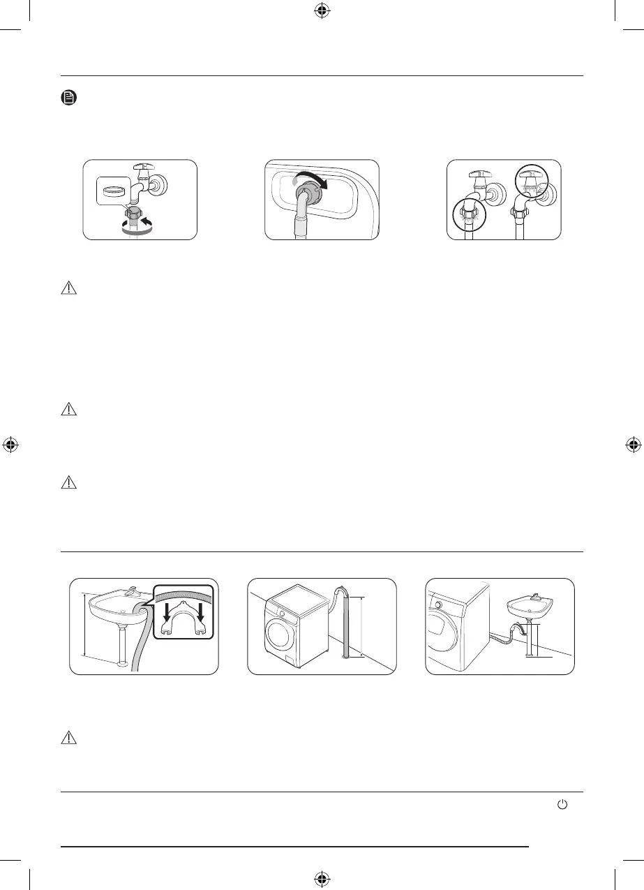 1. Kobl vandslangen til vandhanen, og drej så med uret for at fastspænde den.