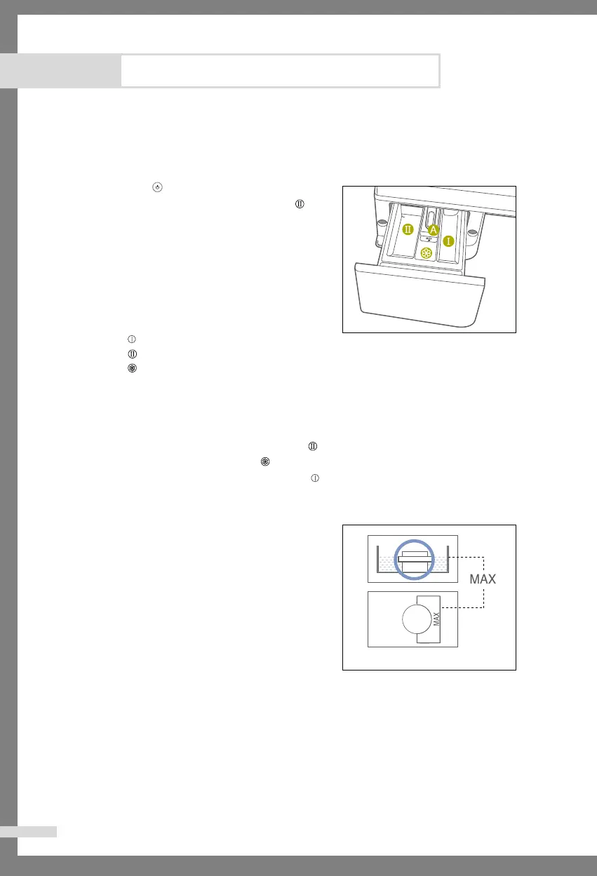Dispenser : Additives,e.g.fabric softener or former (fill no higher than lower edge of insert “ A”)