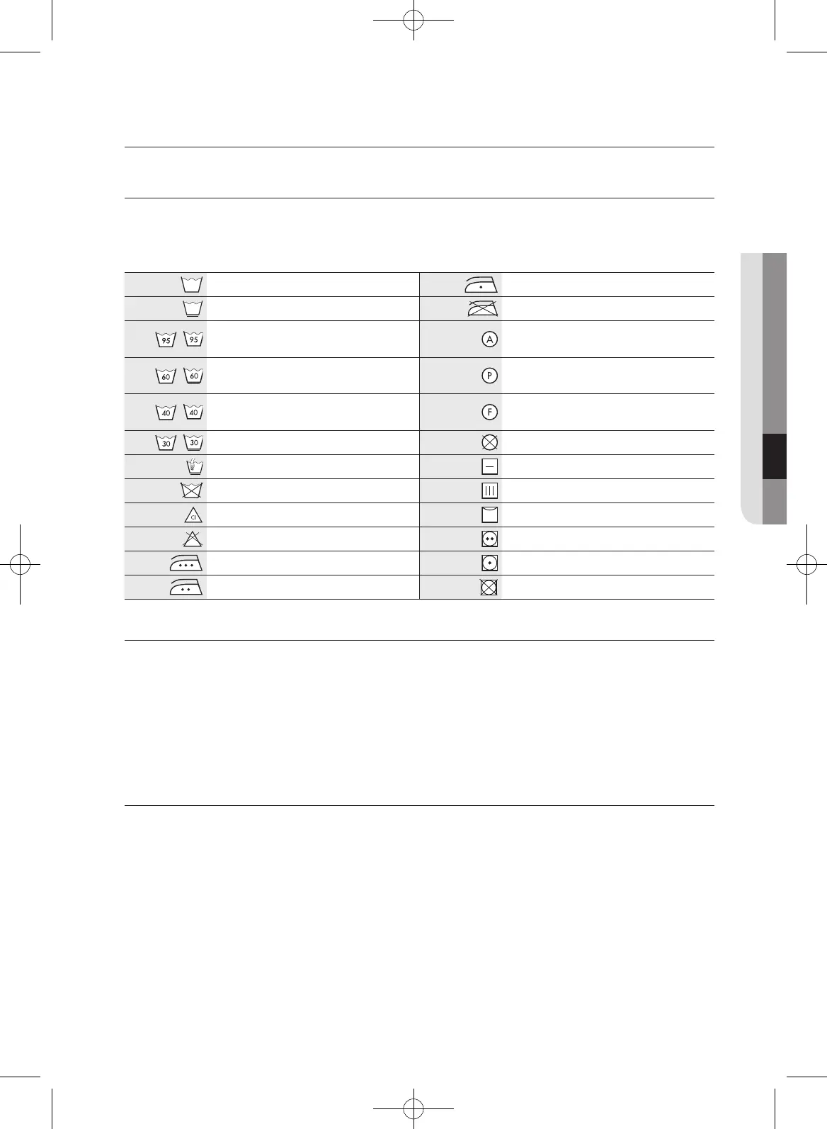 The following symbols provide garment care directions. The care labels include four symbols in this order: