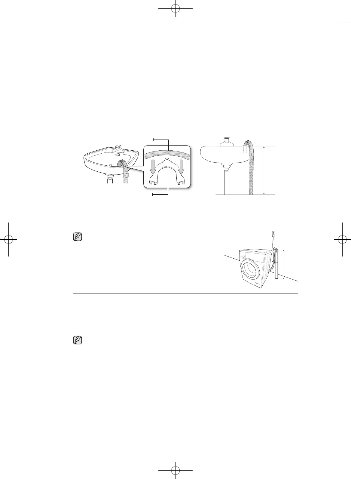 1. Over the edge of a wash basin: The drain hose must be placed at a height of between 60