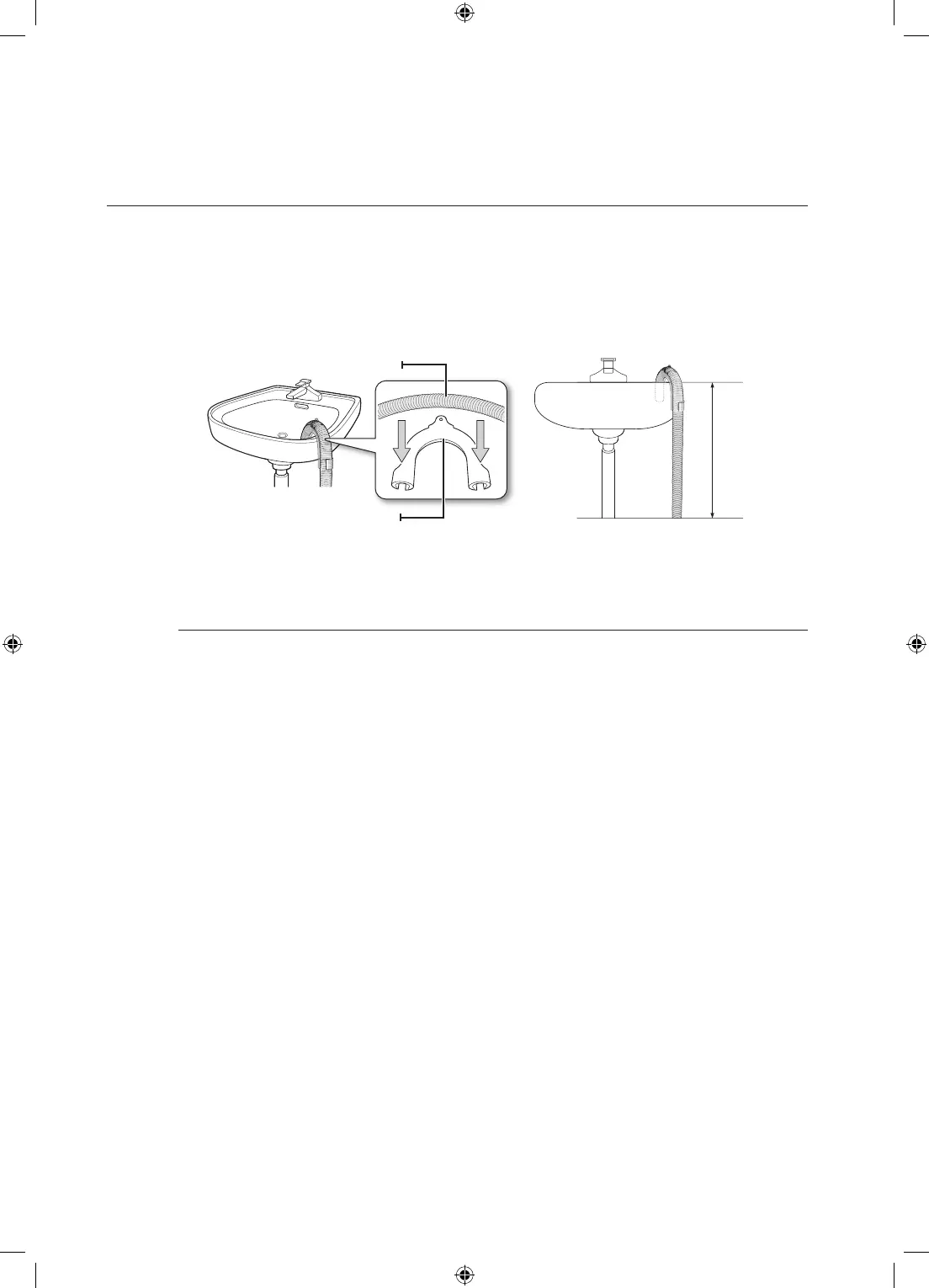 1. Over the edge of a wash basin: The drain hose must be placed at a height of between 60