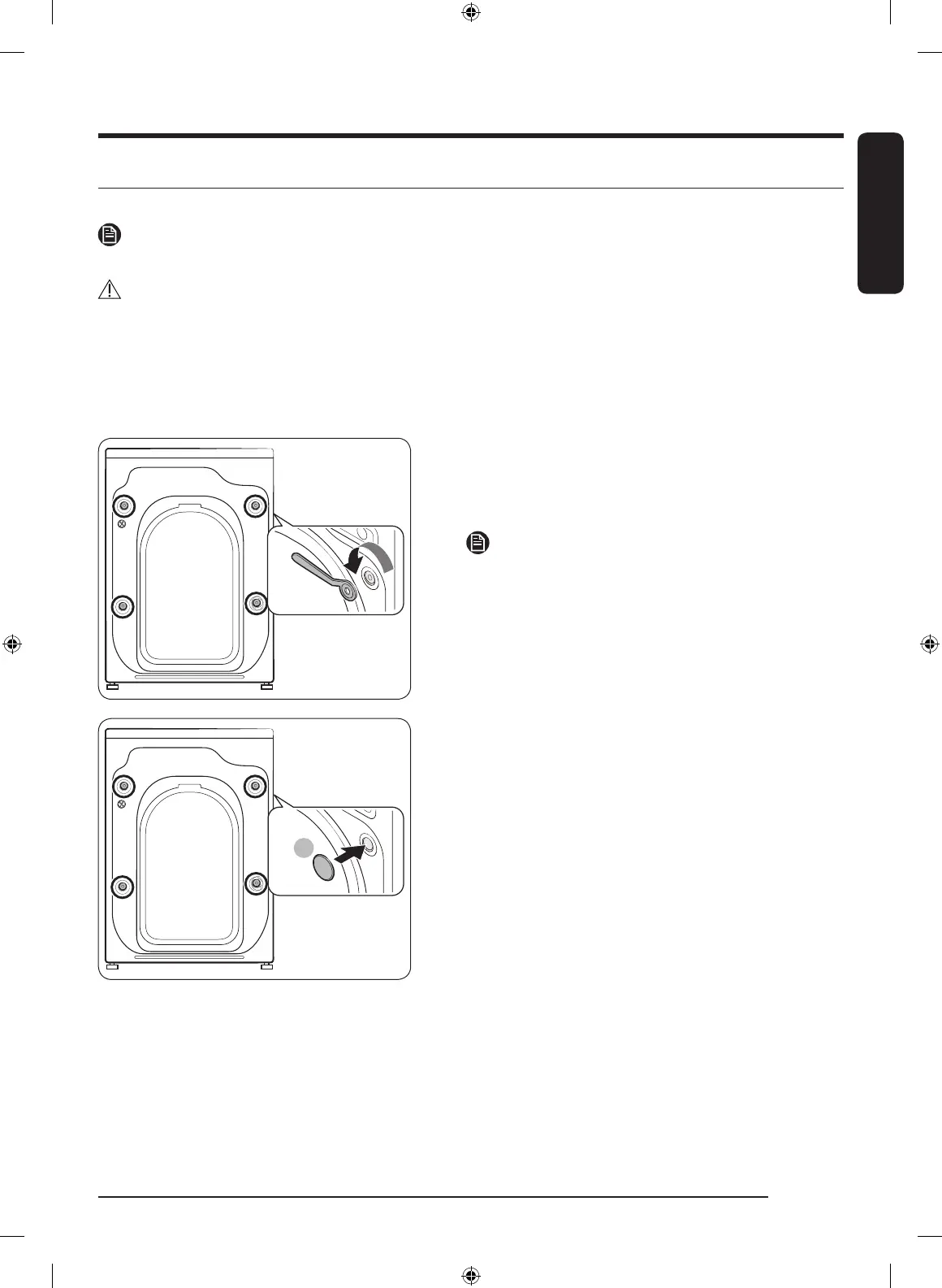 • To avoid injury, cover the holes with bolt caps after removing the shipping bolts. Do not move the