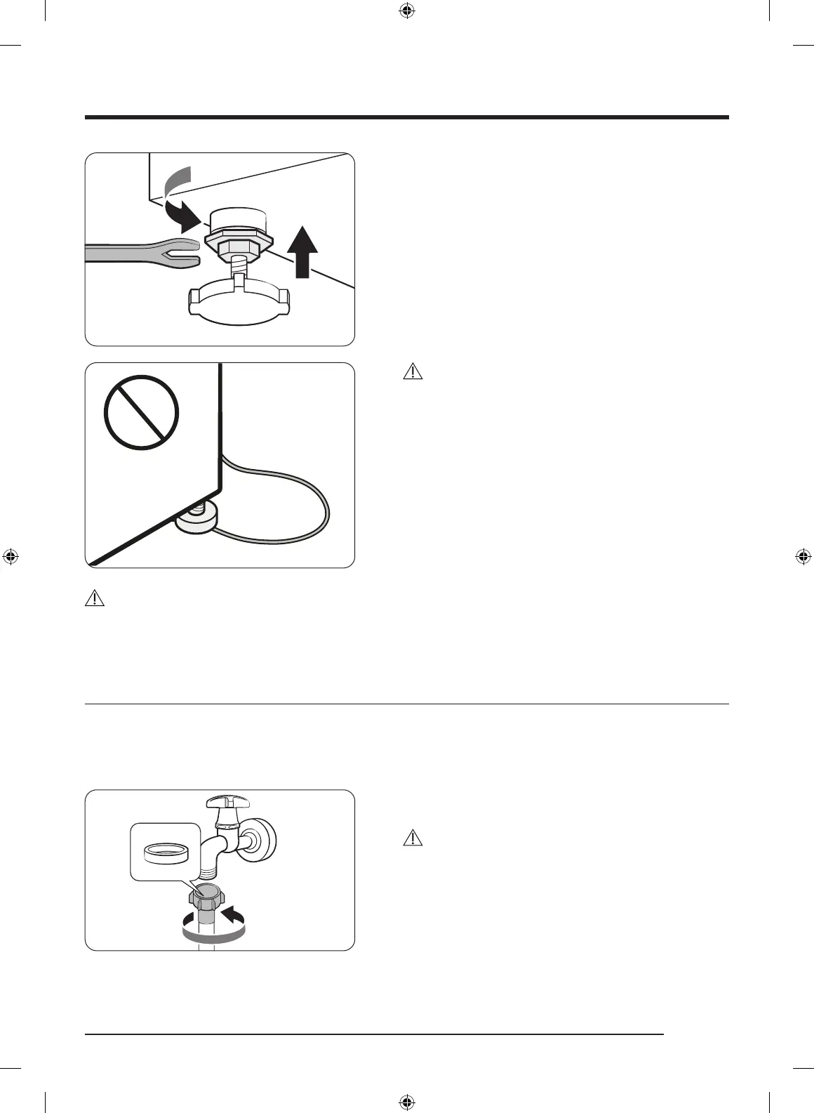 Make sure all the levelling feet are seating on the floor surface to avoid the washing machine from moving
