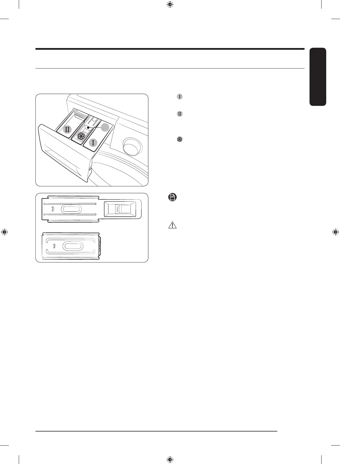 the front-right for fabric softeners, and the rear-right for the preliminary wash.
