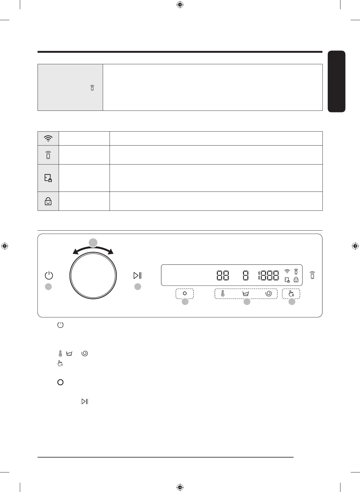 Wi-Fi • This icon indicates that the washing machine is connected to Wi-Fi.