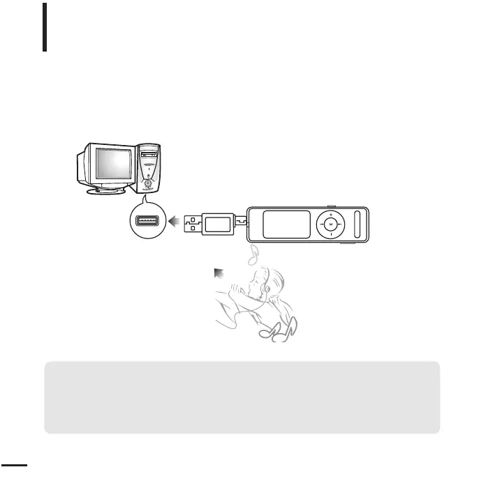 To play music files in the player, first transfer music files in MP3, WMA, Audio ASF,