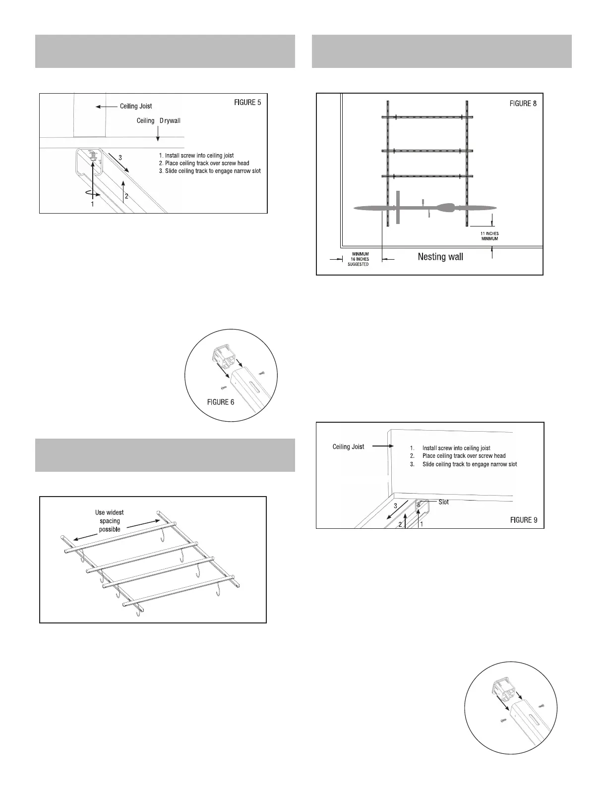 installing the ceiling tracks, make sure there will be sufcient room on either end of the