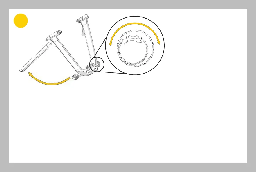 Dépliez totalement les pieds du Trainer et installez-le sur une surface plane. Les patins peuvent pivoter, pour que l’appareil repose bien