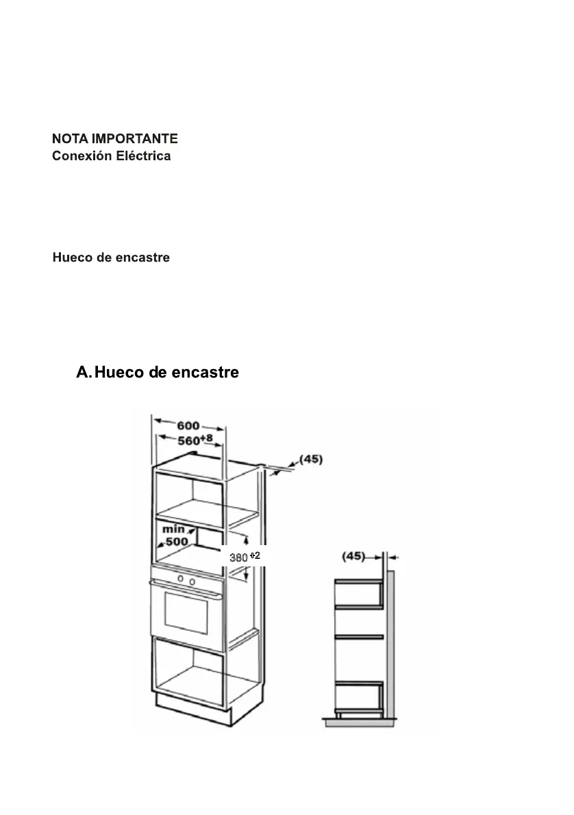 El hueco para la instalación no debe tener una pared detrás.