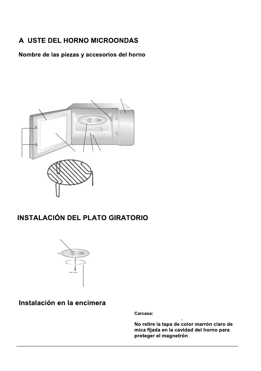 d. Si la bandeja de vidrio o el conjunto del aro giratorio se