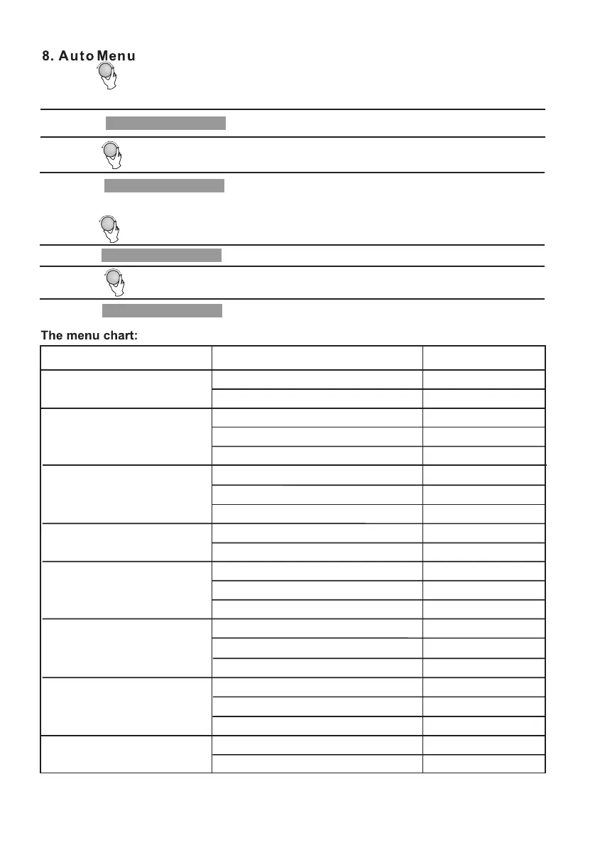1) Turn " " right to choose the menu, and "A-1" to "A-8" will display, which