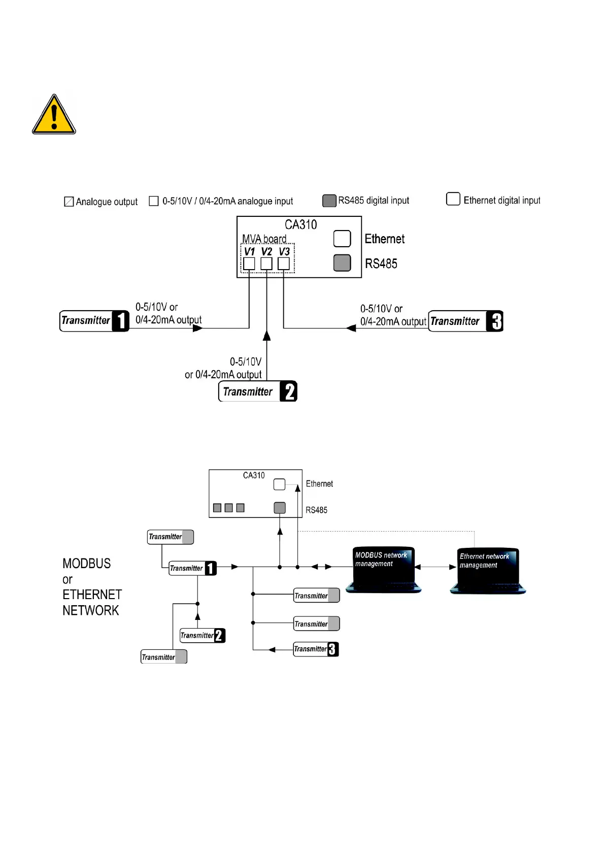 CA310 变送器有 3 通道模拟信号输出, 2 通道数字信号输入/输出 (可选购功能) 和当搭配 MVA 模块时的 3 通道