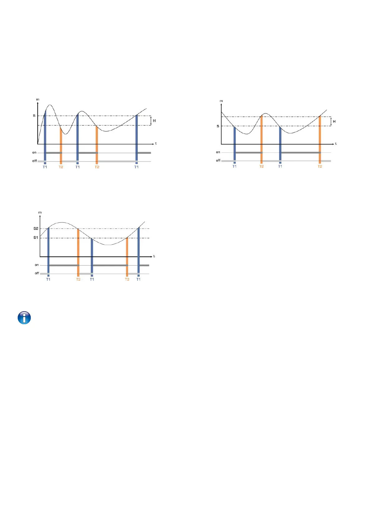 测量值 (m) > 设定点 (S) + 迟滞 (H) 并超过时间延迟 T2