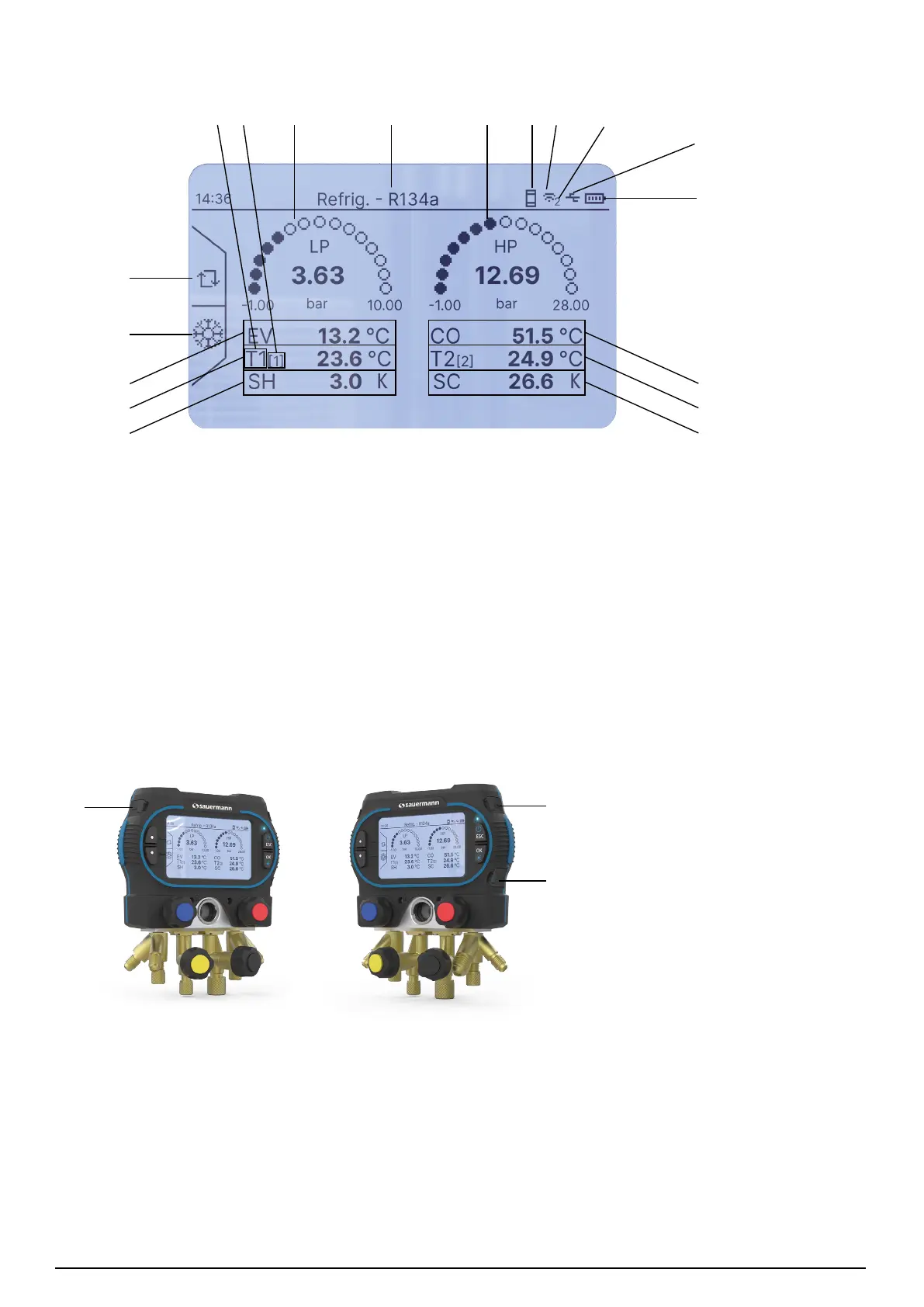 (1) Port for wired temperature probe T1