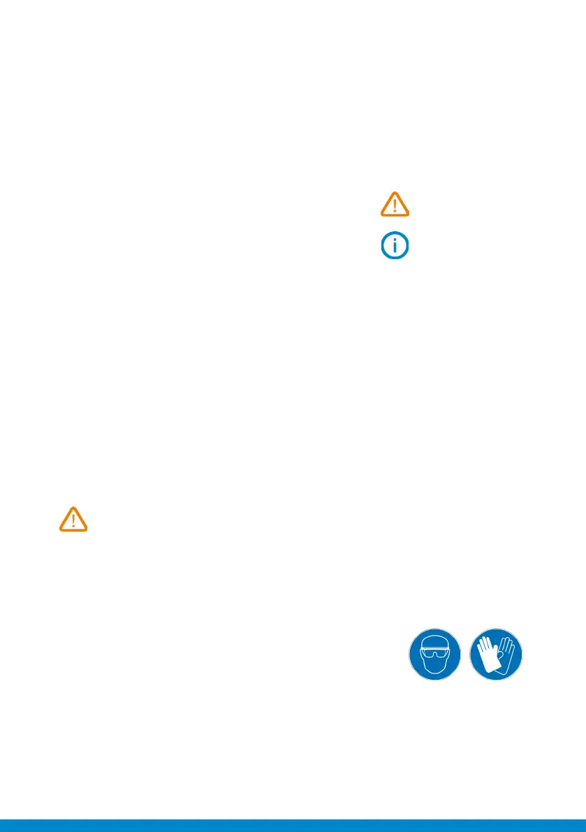 • Toujours porter des lunettes de protection et des gants lors de