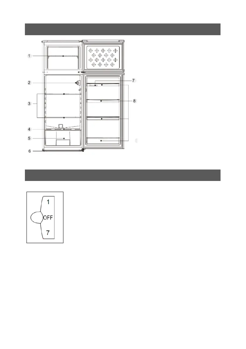 1. Termostaten kan ställas in mellan 1 och 7.