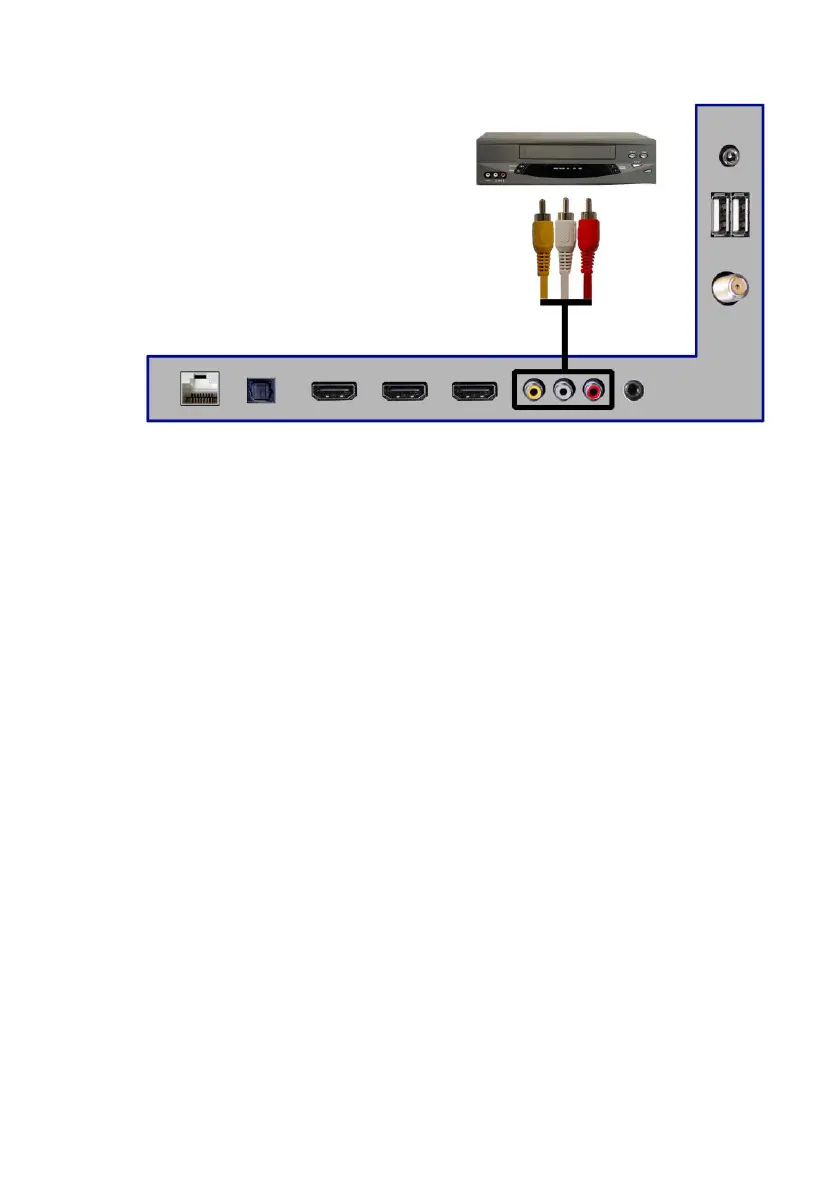 VCR and AV’s white connector port on the back side of your Android TV.