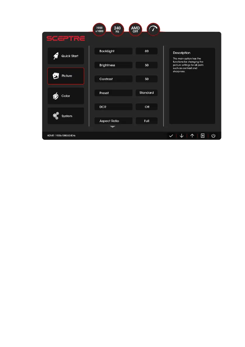 6. ASPECT RATIO – This option adjusts the display's ratio of width and height.
