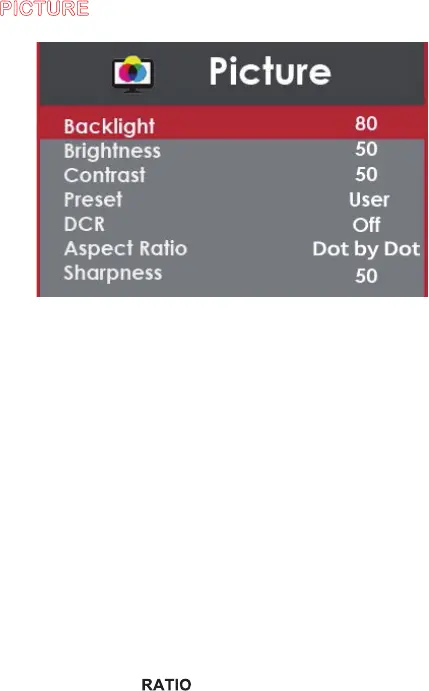 6. ASPECT – This option lets the user adjust the aspect ratio of the monitor.