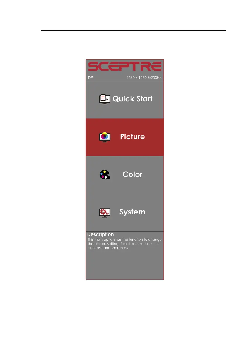 When you press the ● button on the monitor, the OSD screen will appear. Select each