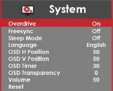 1. OVERDRIVE – This option increases the pixel response time of the LCD screen.
