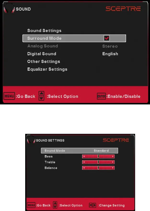 2. Press ◄ or ► to select SOUND and press ENTER.