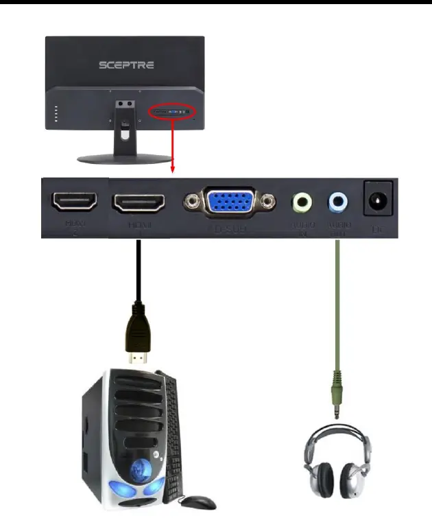 2. Obtain a HDMI cable and connect one end to the back of the monitor and