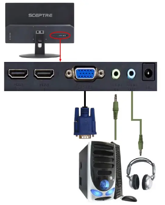 3. Obtain the VGA cable and connect to the VGA connection on your PC. Connect the