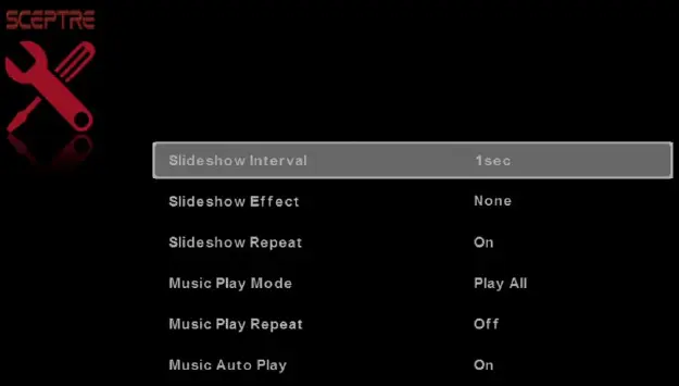 1. SLIDESHOW INTERVAL – This option adjusts the time interval of a displayed picture.