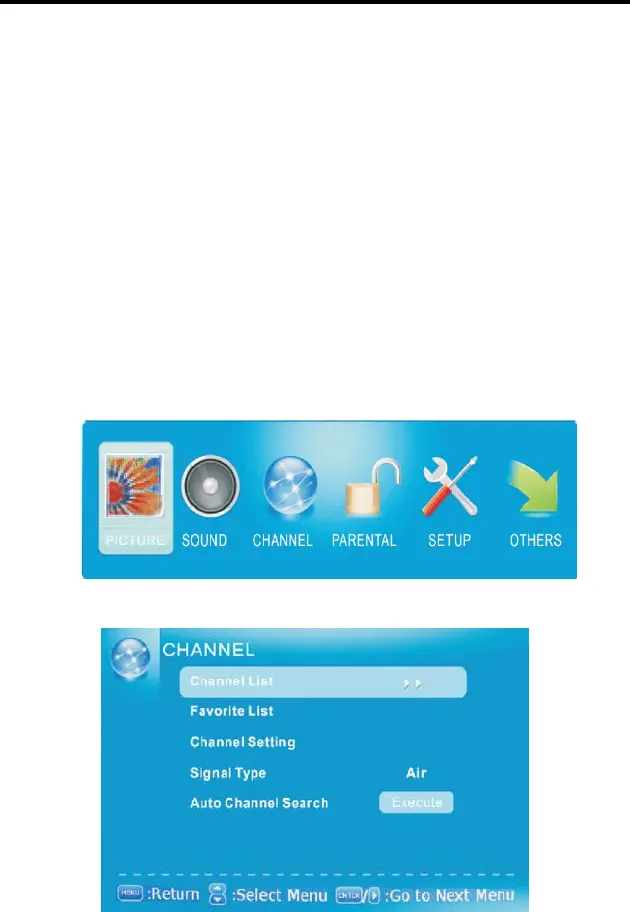 2. Use the ◄ or ► button to select the CHANNEL icon and press OK.