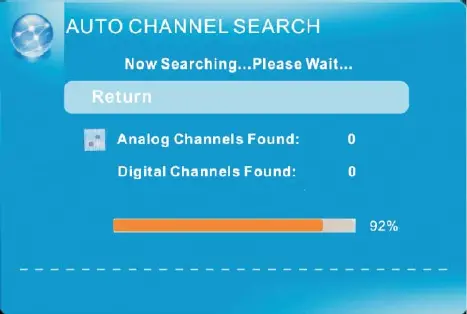 4. Use the ▲ or ▼ buttons to select AUTO CHANNEL SEARCH and