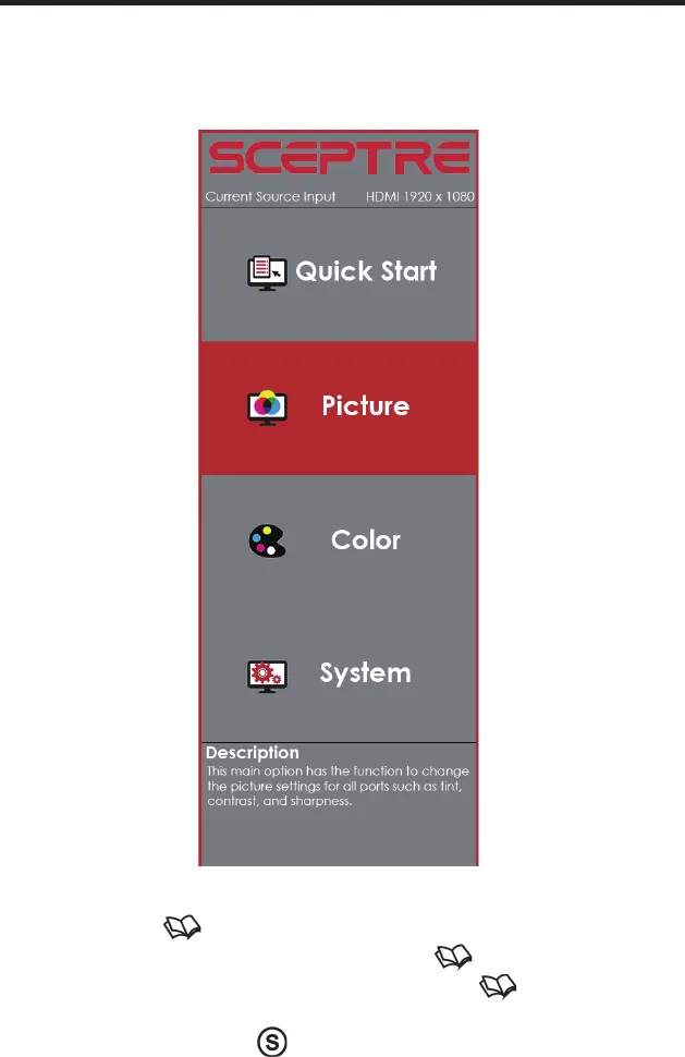 The OSD menu of the monitor provides various adjustments for the monitor such as