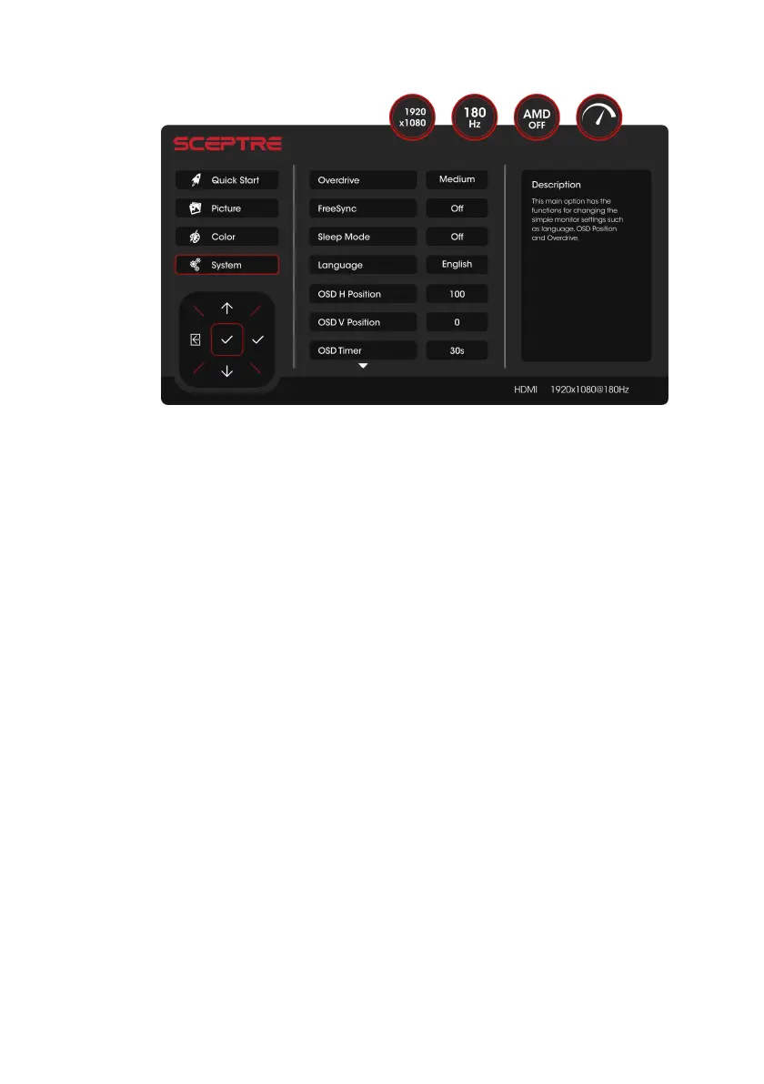 5. OSD H POSITION – This option adjusts the On-Screen Display (OSD) left or right.