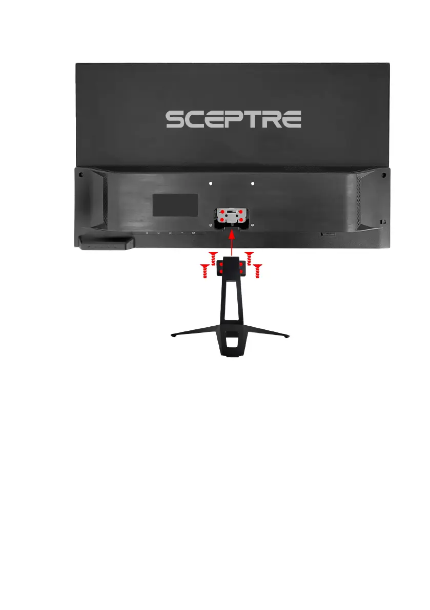 2. Align the monitor stand with the four screw holes marked in red. Once the stand