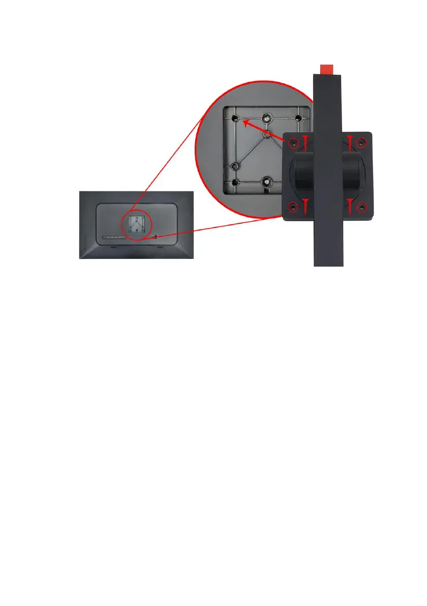 3. Connect the assembled stand piece to the back of the monitor and secure the