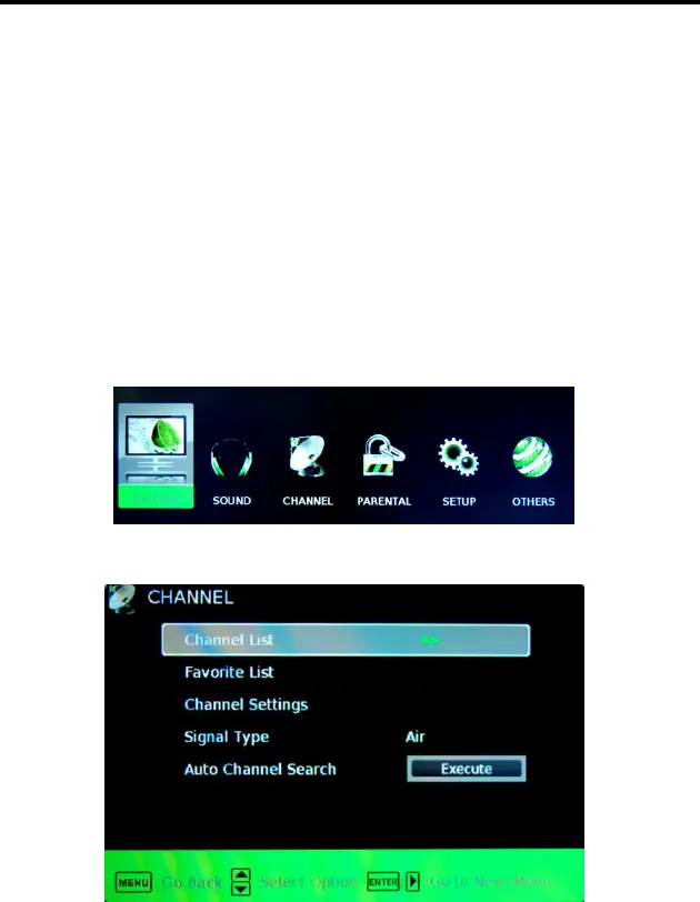 2. Use the ◄ or ► button to select the CHANNEL icon and press ENTER.