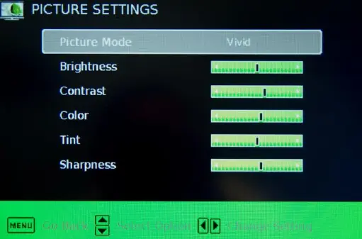 of the TV, giving warm, normal, cool, (warm being more red, cool being