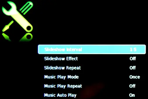 1. SLIDESHOW INTERVAL – This option adjusts the time interval of a displayed picture.