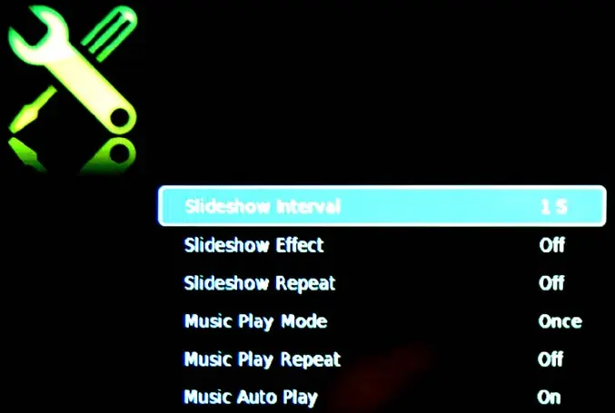 1. SLIDESHOW INTERVAL – This option adjusts the time interval of a displayed picture.