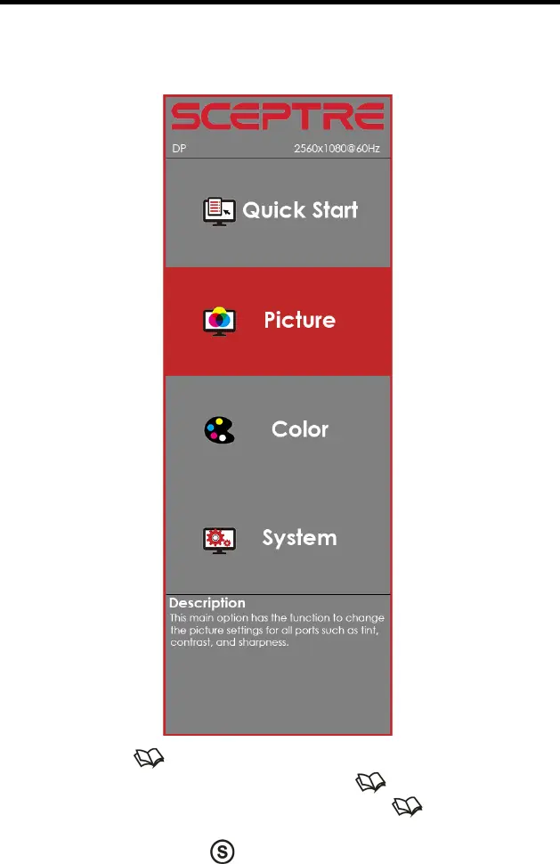 The OSD menu of the monitor provides various adjustments for the monitor such as