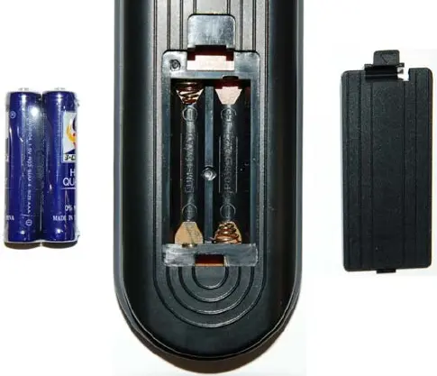 Please insert the AAA batteries into the remote control. Make sure the (+) side and the (-) side
