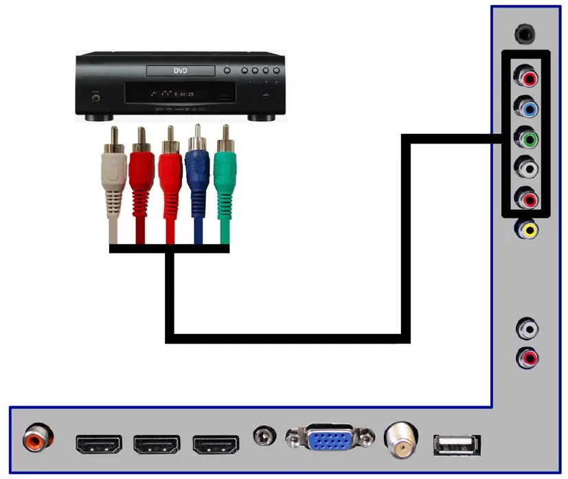 2. Obtain a Component Cable. Connect the green color connector to both your DVD player