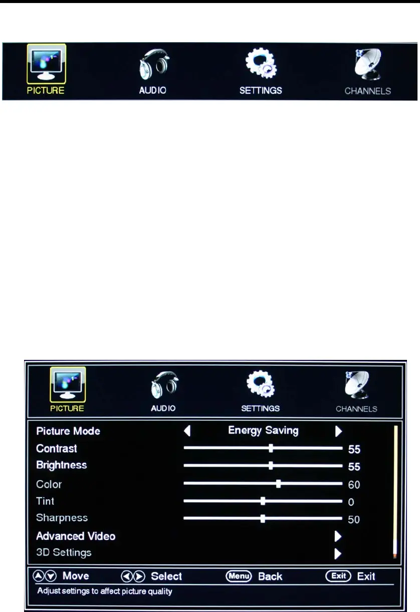 This option allows users to adjust the TV’s picture sharpness, color, tint, and other