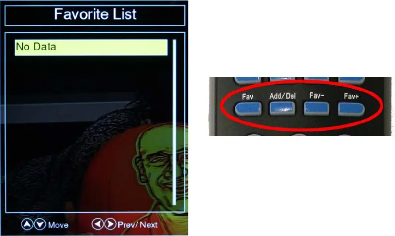 3. You can also use the FAV- or FAV+ buttons to browse the favorite channels directly.