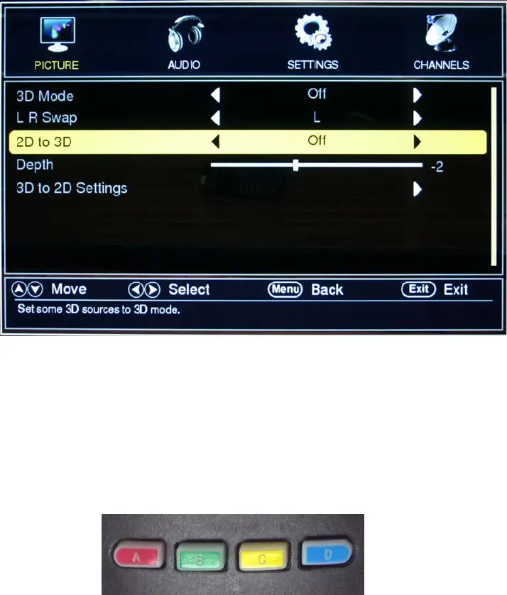 PICTURE > 3D SETTINGS menu for the option or you can use the RED A hotkey to