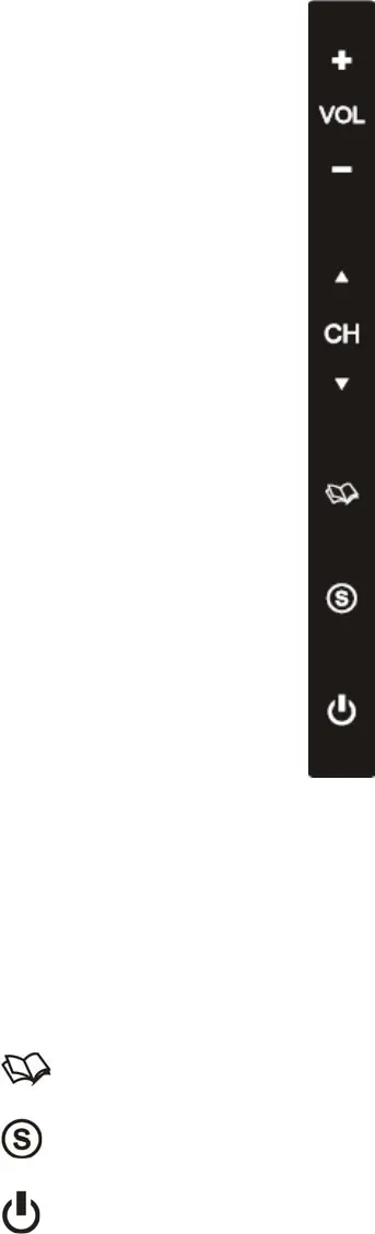 1. VOL(+) – This button increases the TV’s volume. If a sub-menu is active, pressing