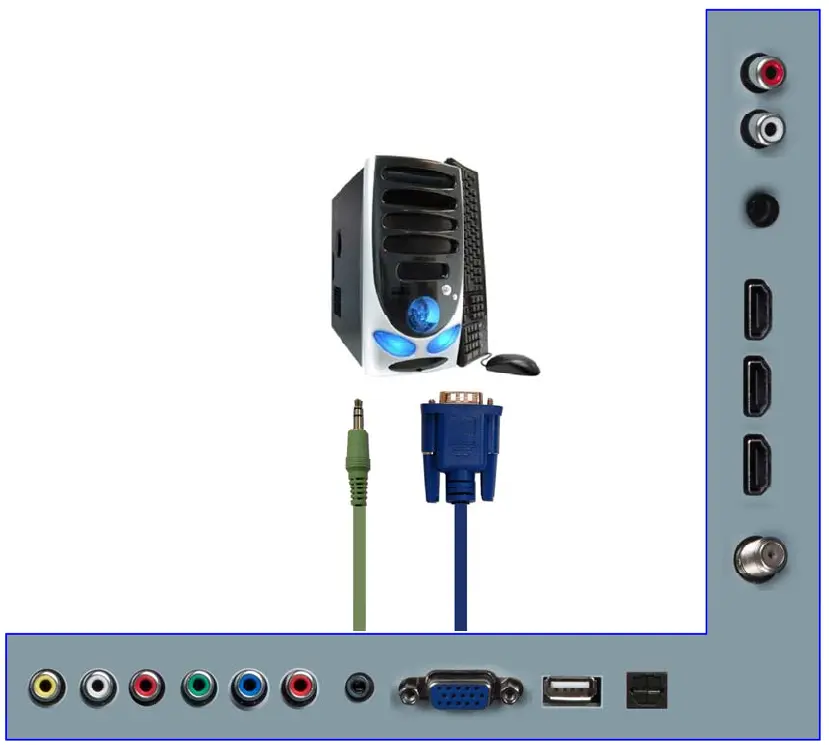 Connecting to a PC with VGA and 3.5 mm minijack …