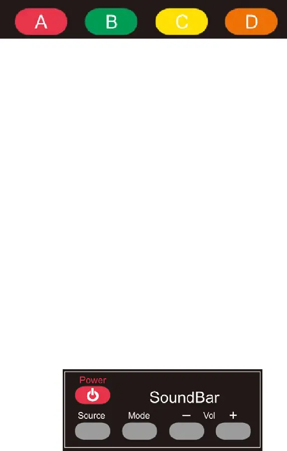 • Vol(-) – This button decreases the volume of the Sound Bar.